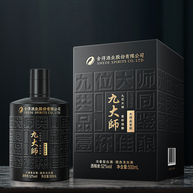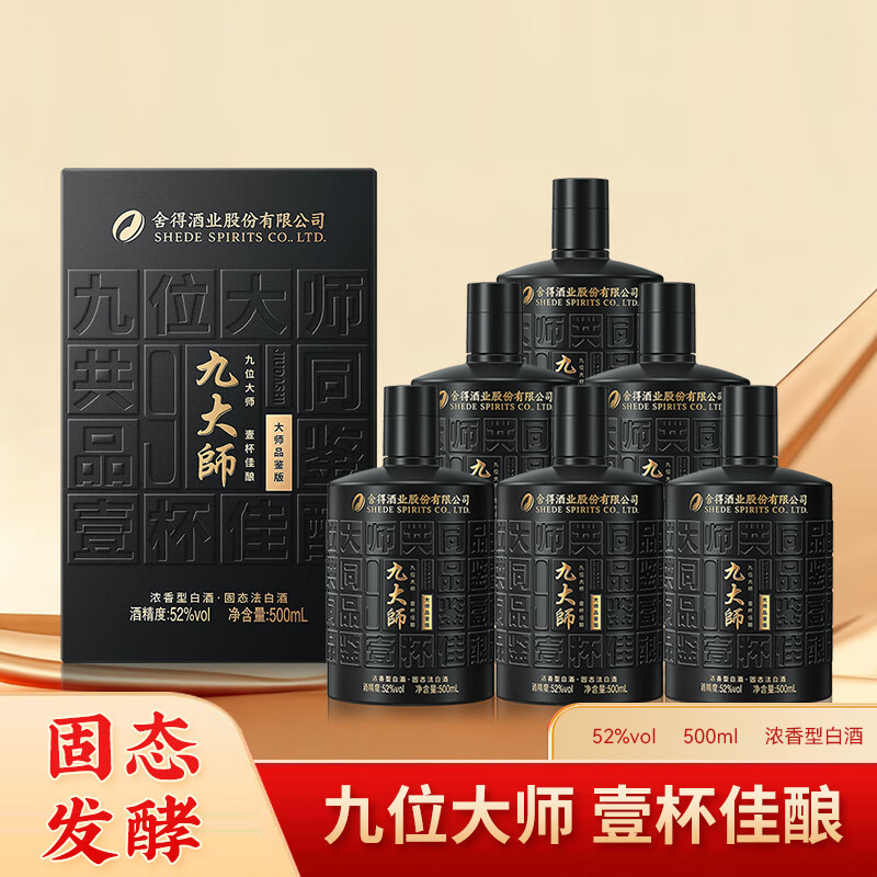 舍得股份 九大师 52%vol 高端浓香型白酒 纯粮酿造 品味经典 商务宴请 500mL*6瓶 整箱装